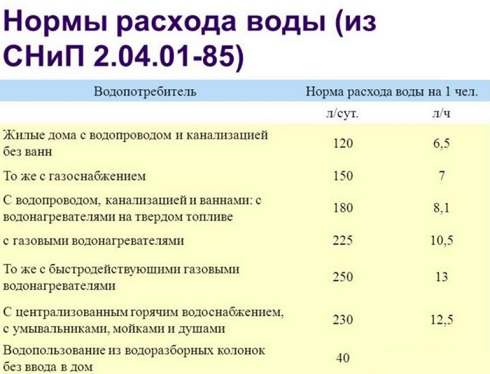 Норматив потребления воды по городам