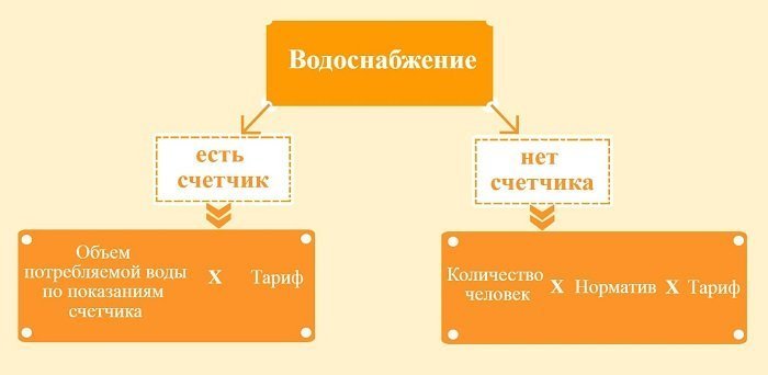 Формула расчета холодной и горячей воды без прибора учента