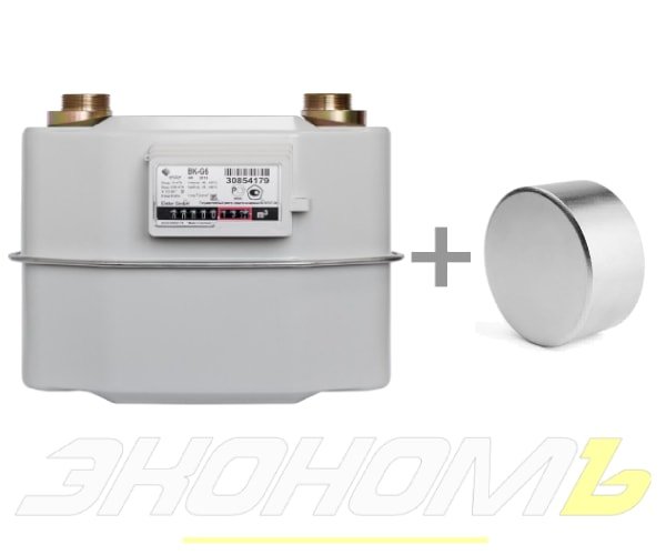 Газовый счетчик с магнитом в комплекте ВК-G6 предназначен для измерения объема потребляемого газа (природного, сжиженного, нефтяного и др. неагрессивных газов) в квартирах, индивидуальных домах и других сферах коммунального хозяйства. Счетчик применяется для учета объема газа в домах, оборудованных газовыми плитами, газовыми колонками, нагревательными котлами средней мощности.